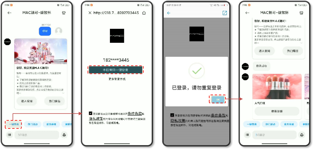 例如在Mac魅可的5G消息案例中,基于5G消息的多媒体卡片式呈现、会话式交互、安全可靠等特点和优势,打造出“荐+选+购+服”电商全流程、智能化服务。顺利获得5G消息窗口便可实现优惠下发、活动宣传、一键下单、精准推送、会员关怀等特色应用,帮助魅可打造线上会员运营的新渠道,成为魅可活动推广、消息通知的新兴品牌触点,勾勒出了消息即服务,服务即营销的完整轨迹线。